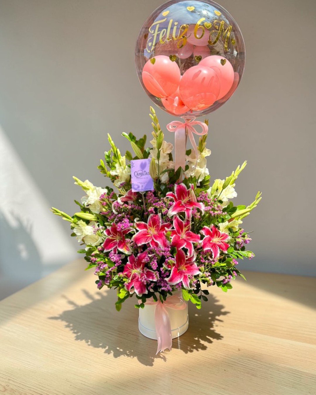 Lirios cuidadosamente seleccionados en una presentación moderna y elegante. 🌸